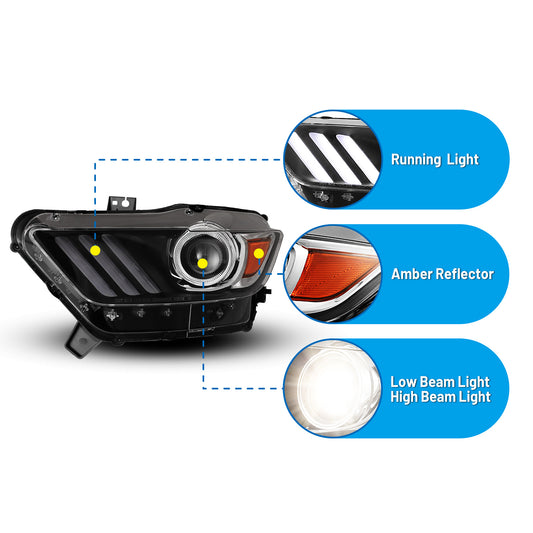 For 2015-2017 Ford Mustang Coupe & Convertible/2016-2020 Ford Shelby GT350/2020-2022 Ford Shelby GT500 Headlights - Black / Clear