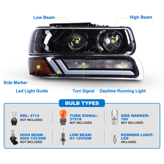 For 1999-2006 Chevy Silverado/2000-2006 Chevy Suburban 1500 2500/2000-2006 Chevy Tahoe Head Lights - Glossy Black/ Clear