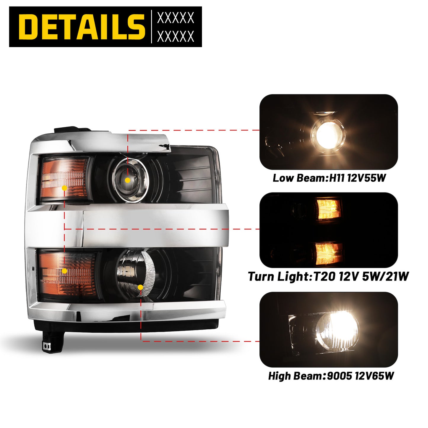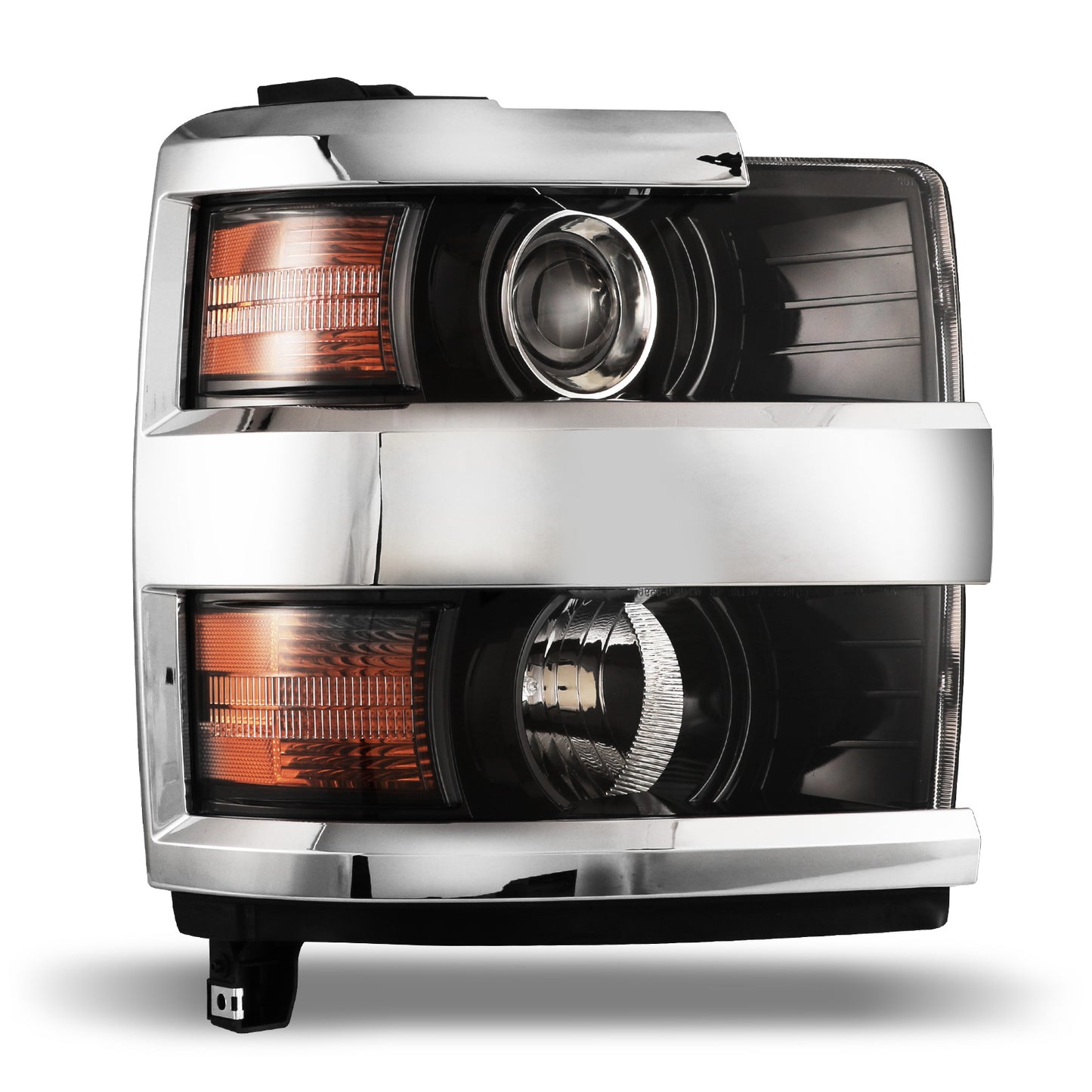 Faros delanteros para Chevy Silverado 2500 HD/ 3500 HD 2015-2019, lados derechos, 1 carcasa cromada negra brillante/transparente