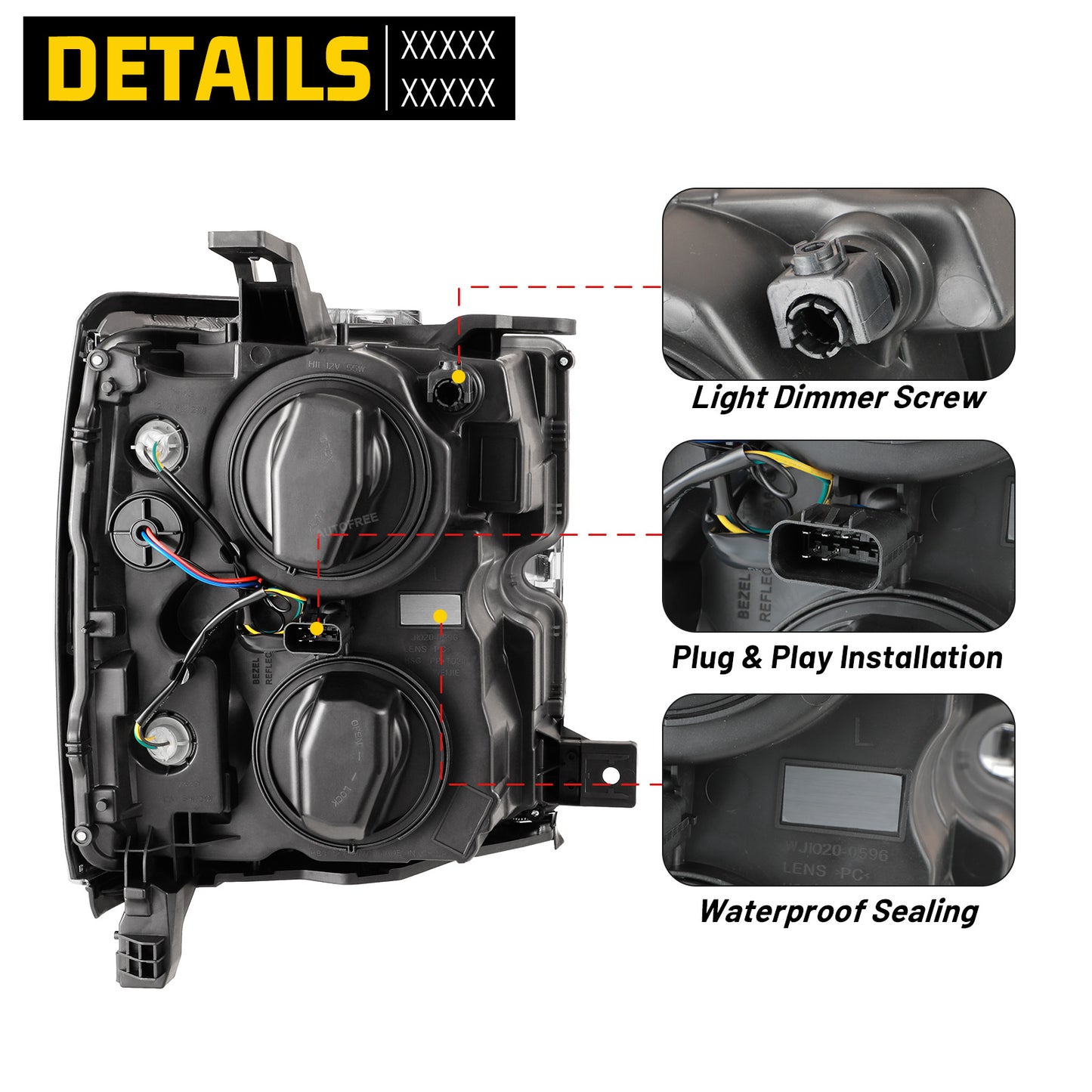 Experimente la belleza radiante de nuestros faros delanteros con proyector Halo, superando las limitaciones de los faros delanteros tradicionales OEM. Con cautivadores ojos de ángel ahora disponibles en una variedad de aplicaciones y acabados, Winjet le brinda la libertad de elegir. No demores más el cambio de imagen moderno que tu vehículo merece. Pon fin al juego de espera y libera el potencial elegante de tu vehículo con Winjet. ¡Actualice hoy y sea testigo de la notable diferencia usted mismo!