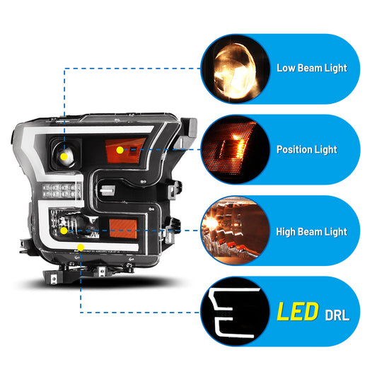 Phare avant Ford F-150/2017-2020 Ford F-150 Raptor 2015-2017 – Noir/transparent