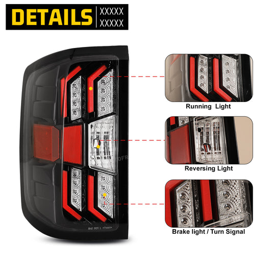 Feux arrière Chevrolet Silverado 1500 2014-2018/2015-2019 Chevy Silverado 2500HD 3500HD – Noir/transparent