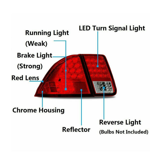 Feu arrière LED pour Honda Civic 4 portes Berline 2001-2005 - Chrome / Rouge
