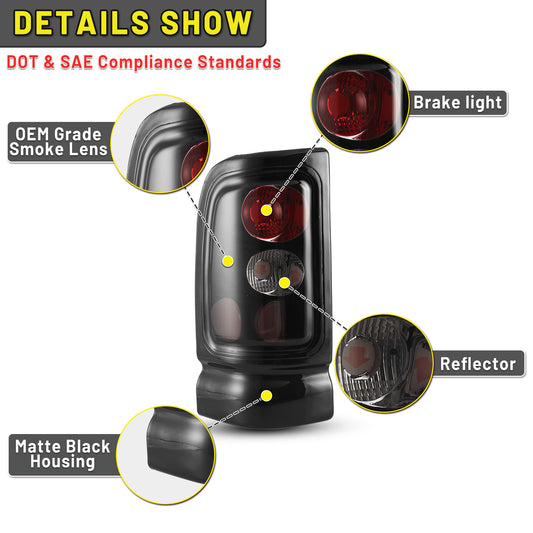 Feu arrière Dodge Ram 1500 2500 3500 1994-2002 – Noir/fumée