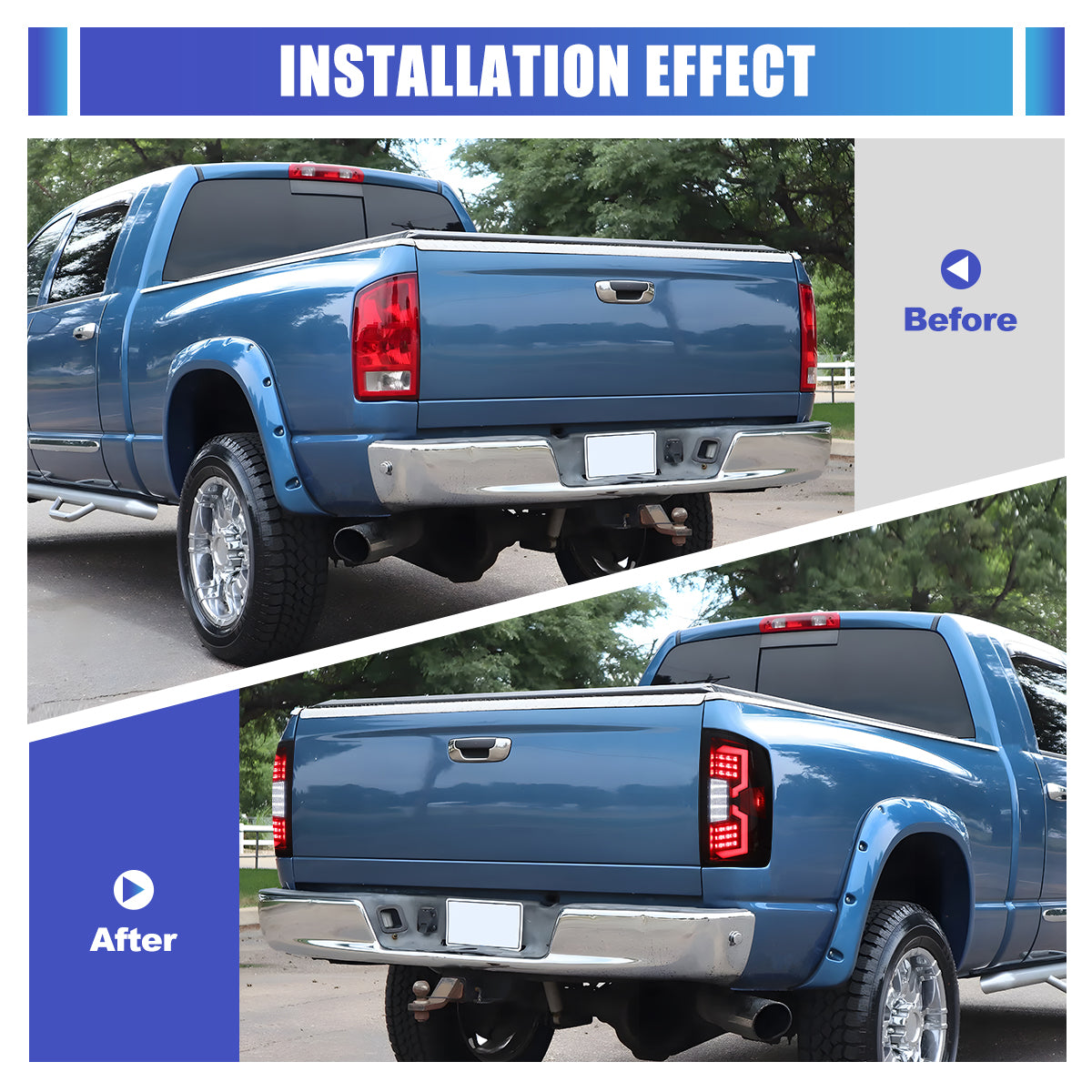 For 2002-2006 Dodge Ram 1500 pickup/2003-2006 Dodge Ram 2500 3500 pickup LED Tail Light - Black/ Smoke