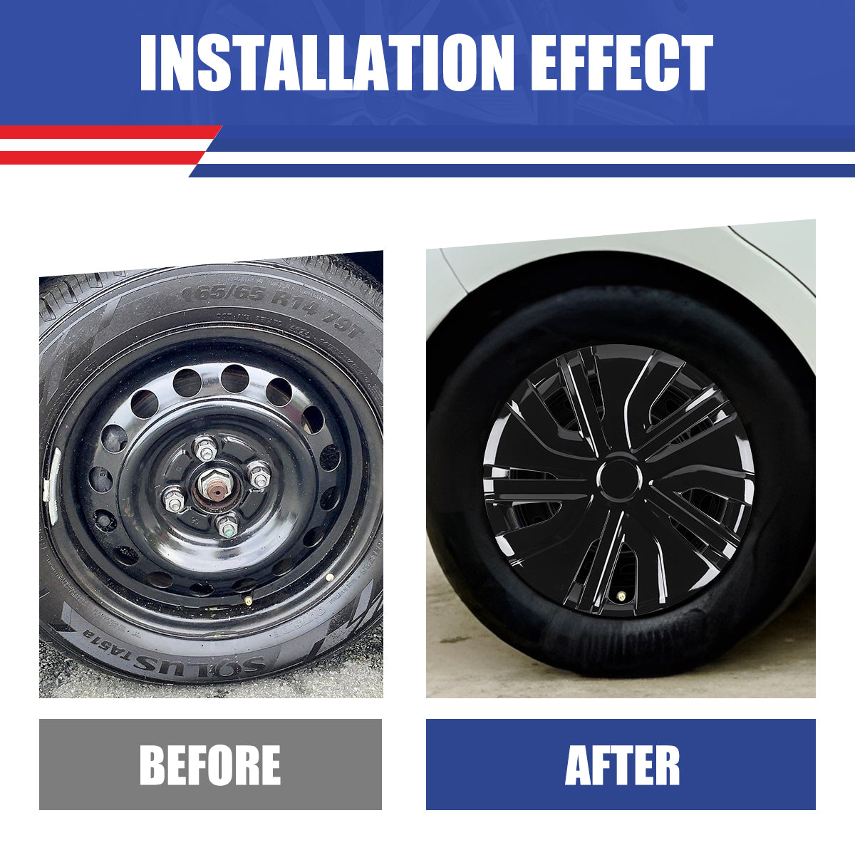 WINJET 14' Hubcaps Wheel Rims Cover for 2014-2025 Mitsubishi Mirage - Black Lacquer