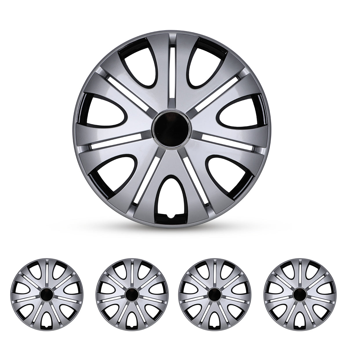 WINJET 14 inch Hubcaps Wheel Covers 5082 - Silver & Black