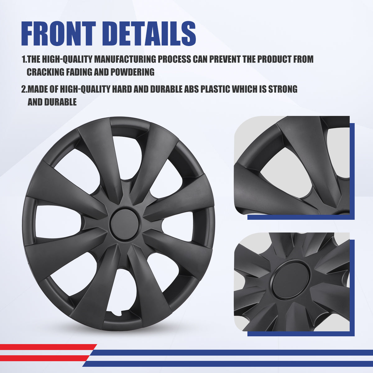 WINJET 15' Hubcaps Wheel Rims Cover for 2009-2019 TOYOTA COROLLA - Matte Black