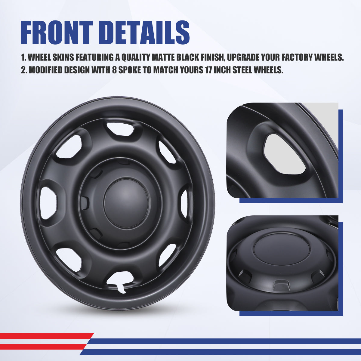 WINJET 17' Hubcaps Wheel Rims Cover for 2010-2026 Ford F-150 XL model - Matte Black